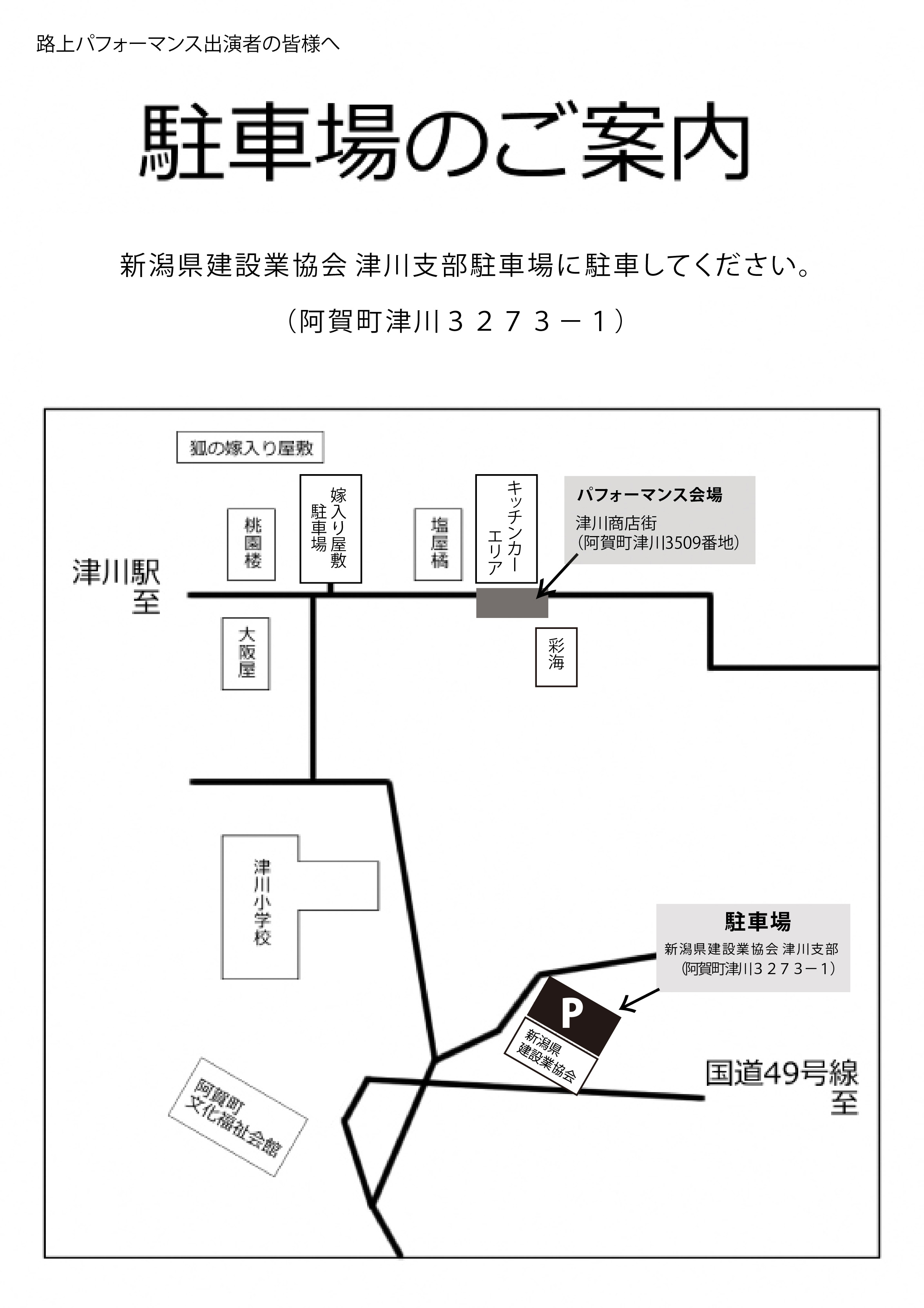 【会 場】 津川商店街 (阿賀町津川3509番地)※旧ライオン堂前